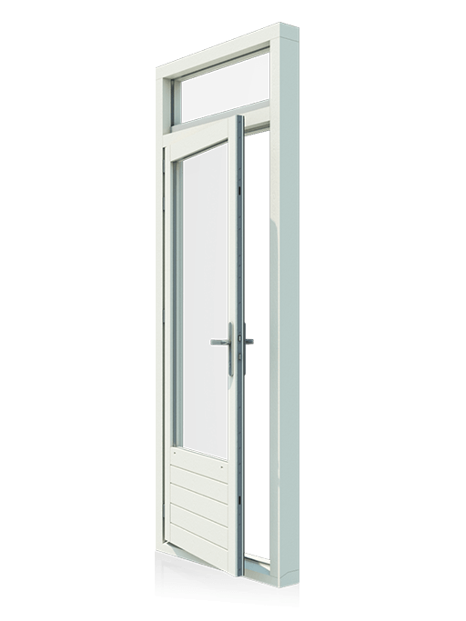 Dit type deurkozijn heeft een bovenraam/bovenlicht en wordt geleverd inclusief deur. Je bepaalt zelf de uitstaling van je deur. Het kozijn past daardoor in ieder interieur door de strakke afwering. Dit kozijn wordt vaak gebruikt in de achterzijde van de gevel. De deur is rondom voorzien van een tochtstrip. Zo wordt geluid en tocht tegengegaan.